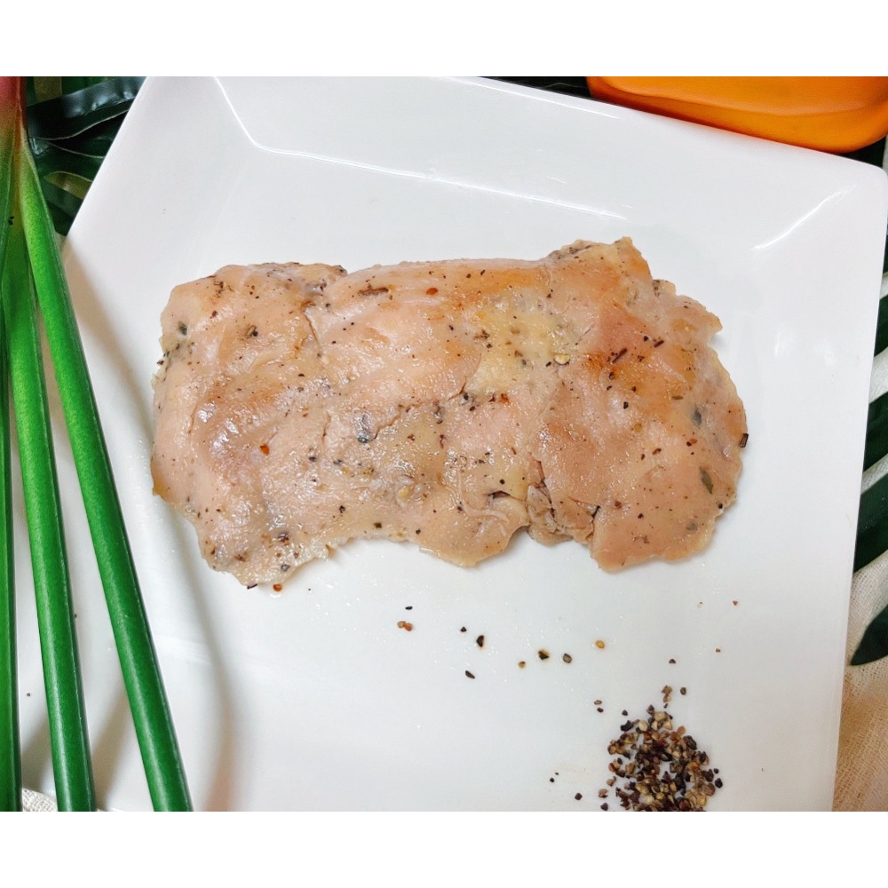 低溫烹調法之雞胸肉,部分切面會出現少許粉紅色為正常現象,請安心食用。